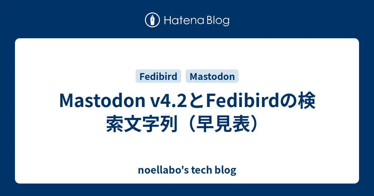 Mastodon v4.2およびFedibirdの、検索欄に入力する検索文字列の書式と効果の一覧です。 アカウントと投稿の照会 特定の書式を検索の入力欄に指定すると、アカウントや投稿を照会する動作となる。 相手から個別およびサーバ単位でブロックされていたり、相手側サーバとの通信に問題がある場合、正しい指定をしても照会に失敗することがある。 分類 書式 効果 アカウント照会 @